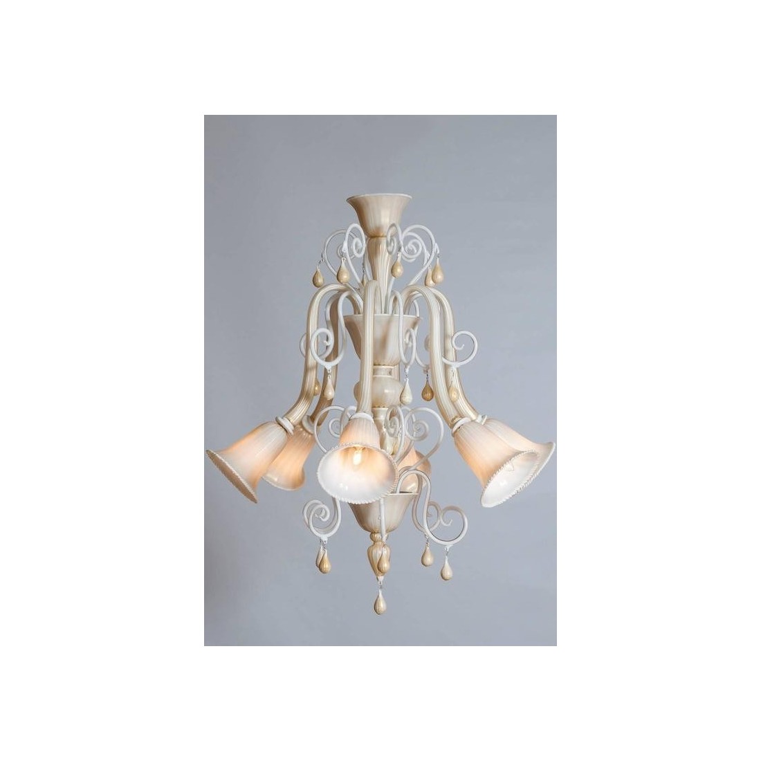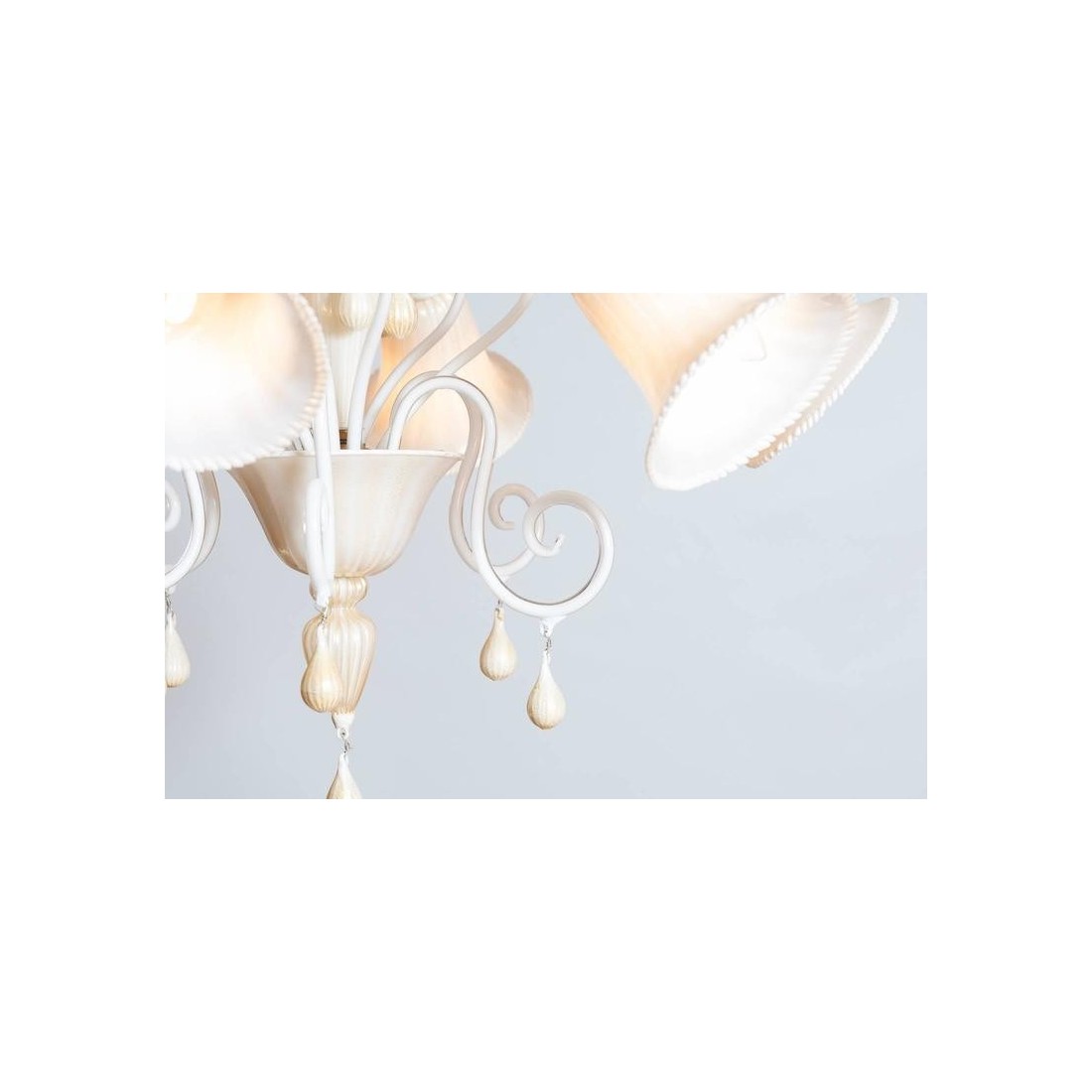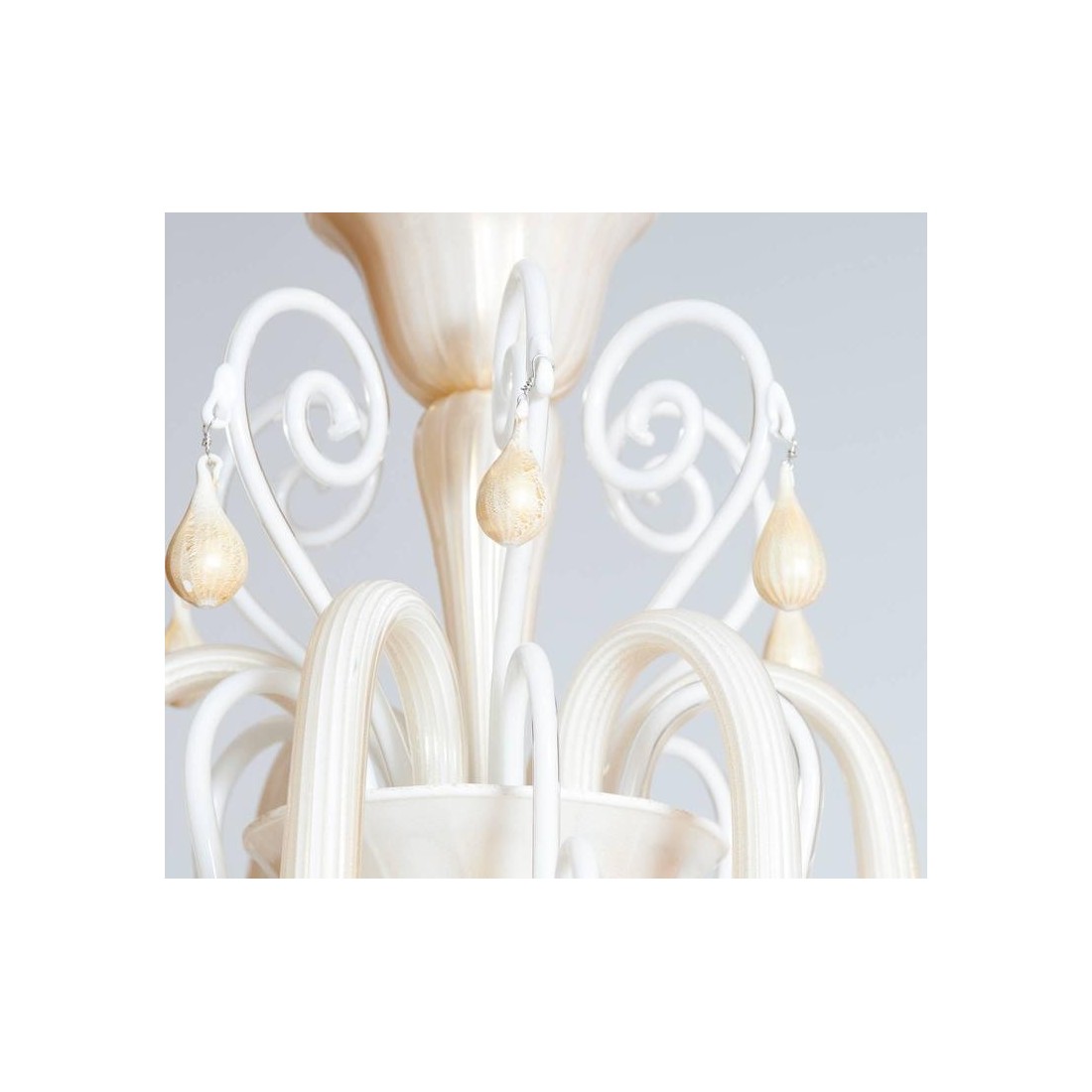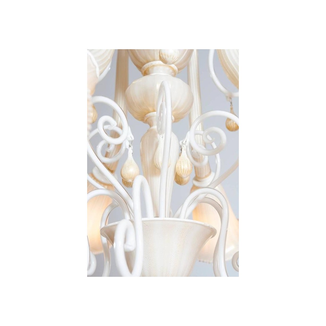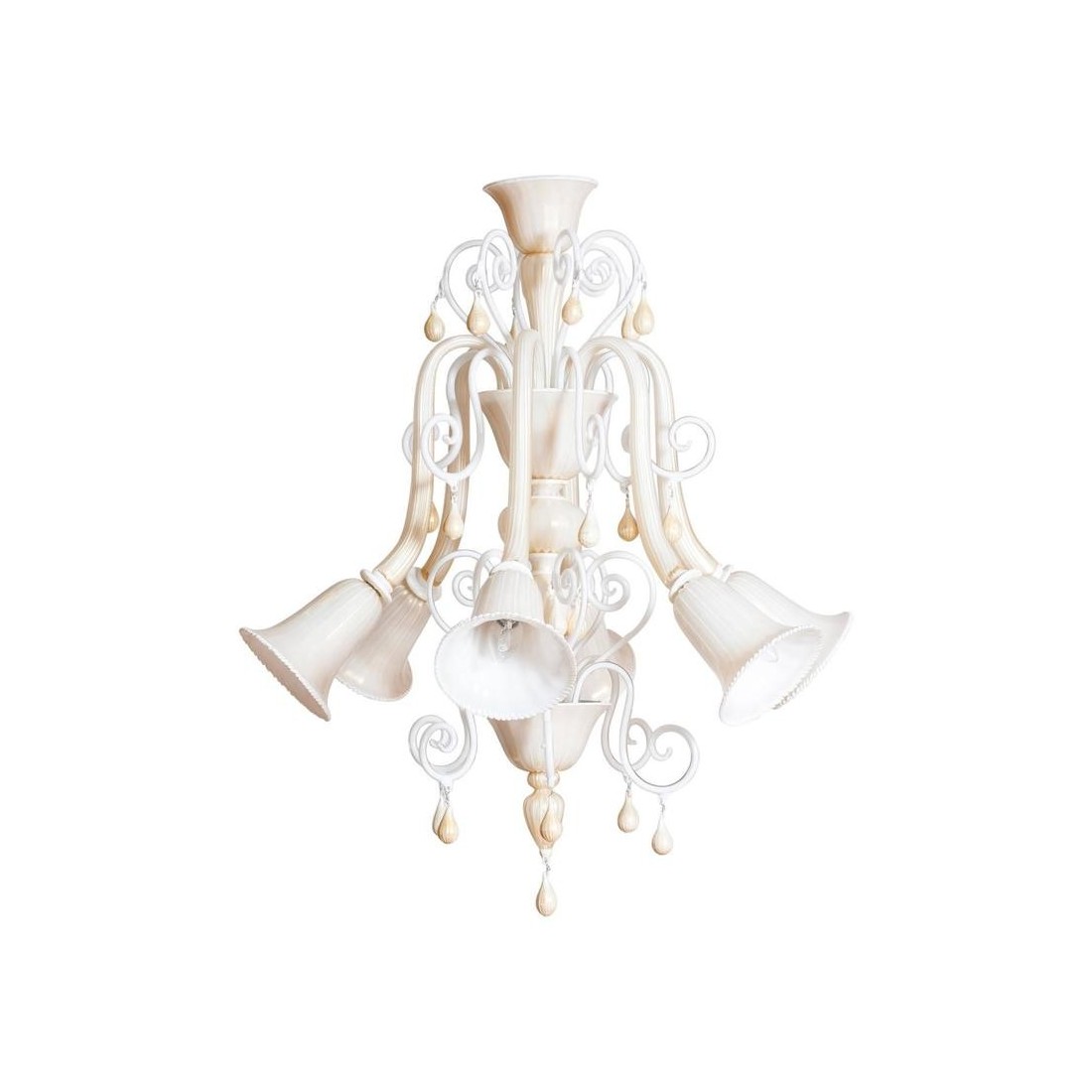Italian Venetian, Chandelier blown Murano Glass, Ivory & Gold 24K, Seguso, 1990s. Unique, exclusive beautiful Italian Venetian chandelier, in blown Murano Glass, ivory colour with gold 24-k finishes; the chandelier is attribute to Seguso design, and its maufacture is dated 1990s, The portrait is composed by six arms, ending with a bulb each one, and surrounded by a huge quantity of small bells and pastorals, that generate an exclusive a unique design. The chandelier is in very excellent conditions, as documented in the attached pictures. As courtesy, we offer for free the professionally rewiring of this item, based on your country''s specifications.