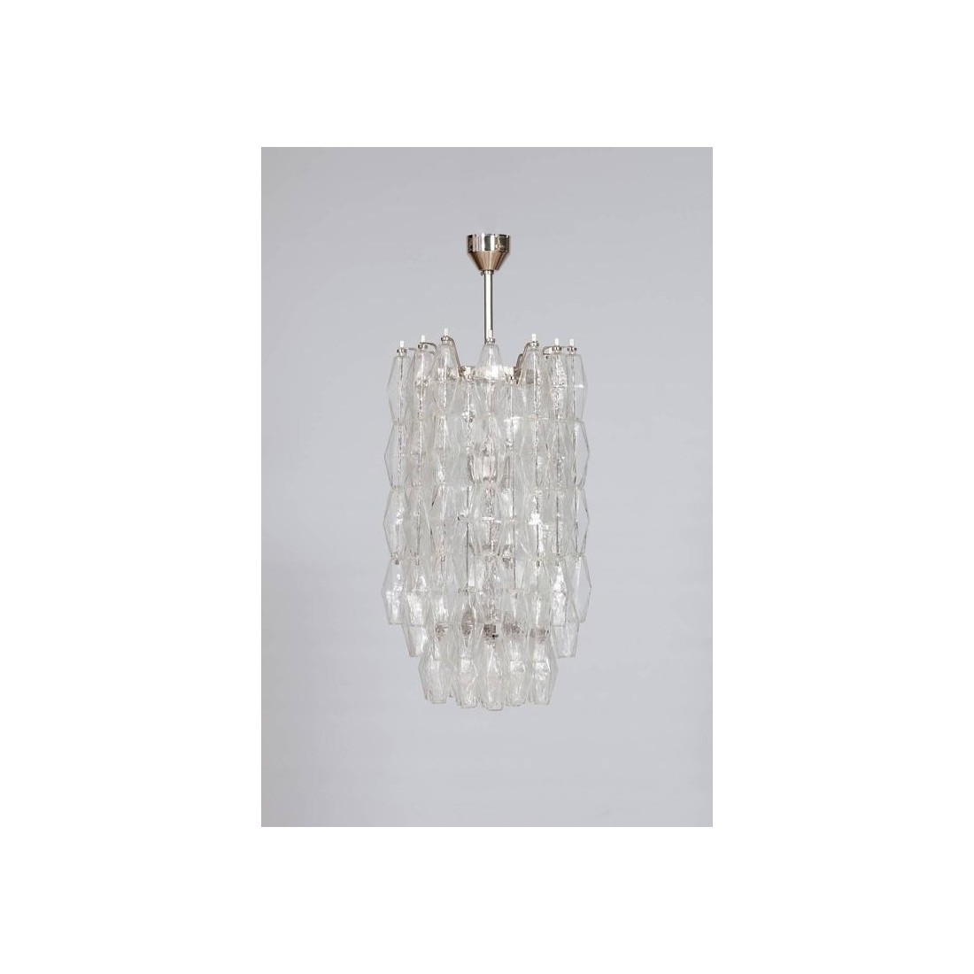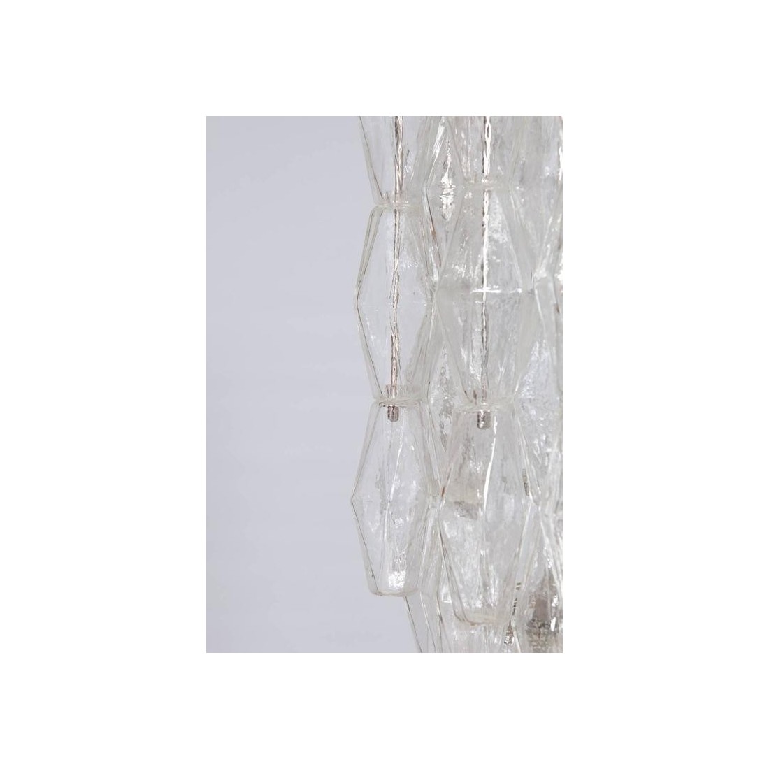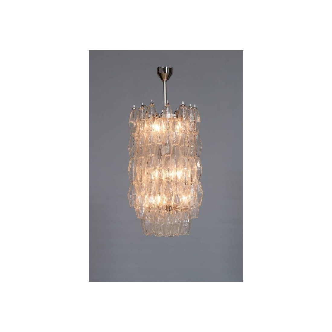 Italian Modern Chandelier in Transparent Murano Glass, Venini, 1960s. This elegant Italian chandelier is attributed to Venini, circa 1960s, and is composed of transparent Murano glass hexagonal elements arranged in vertical rows attached on a chrome frame, forming a cylinder shape. All parts were handcrafted in the Murano Island, circa 1960s, utilising the ancient glassblowing art and techniques. This is an outstanding Italian design chandelier that will bring beauty and elegance into the room. Measures: Height: 39.37 in. / 100 cm. Diameter: 15.75 in. / 40 cm. There are nine lights in total. The chandelier is in perfect original condition, as documented by the photos. Its professional rewiring, according to your country specifications, is included in the service as our courtesy.
