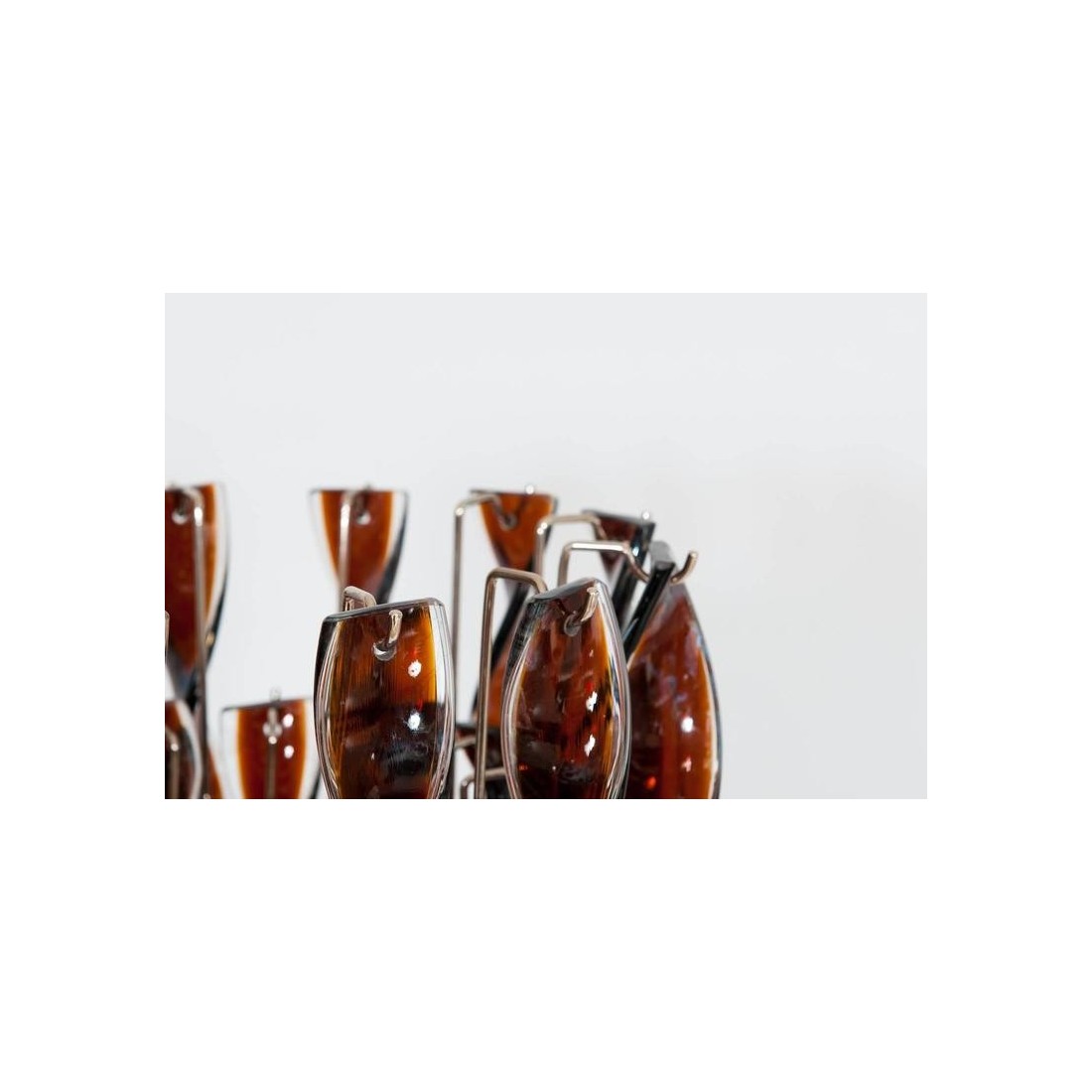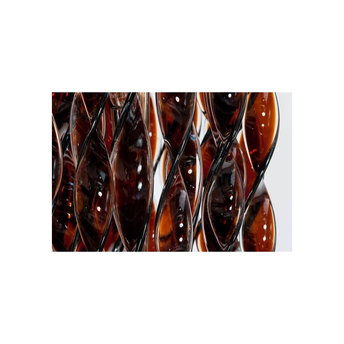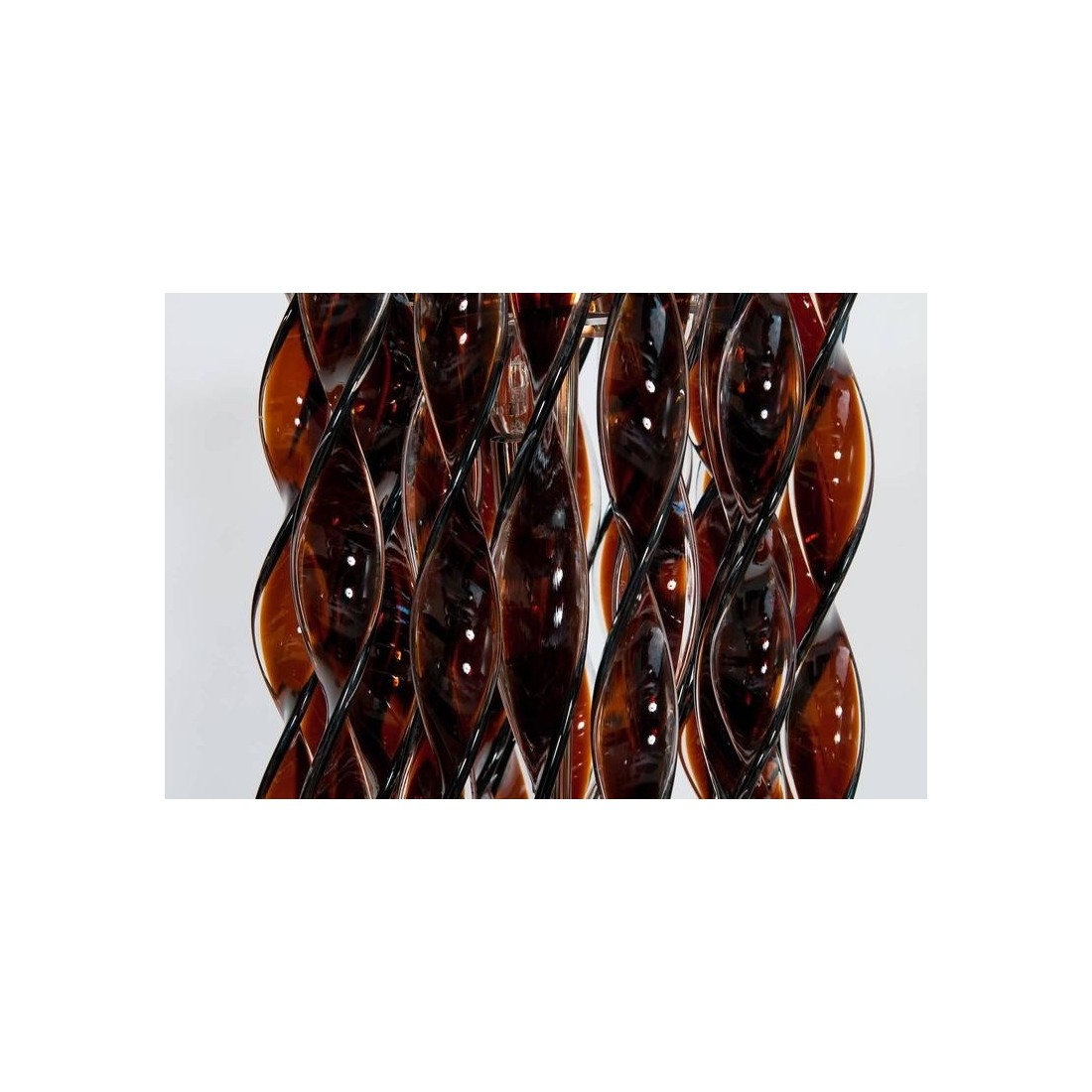 Italian Floor Lamp in blown Murano Glass with twisted tobacco-coloured and clear elements, 1980s. Modern, Unique and Elegant Italian Venetian, Floor Lamp, in blown Murano Glass, with twisted tobacco-coloured elements and transparent finishes, 1980s. This amazing floor lamp is a unique piece of art, composed by long twisted glass bars in blown Murano glass, in tobacco colour with transparent finishes. The Murano glass bars are set at two different levels, generating an additional metaphoric movement to the entire floor lamp. A robust and modern chromed framework supports and joins together all the glass elements in a unique and elegant floor lamp The floor lamp was entirely handcrafted, and made of blown Murano glass elements. It was manufactured and created in the Venetian Murano Island by the local professionals of the blown Murano glass art. Its manufacture is dated 1980s. Six lights are set in the floor lamp body, to generate a very bright environment. This fantastic twisted floor lamp is in excellent conditions, as documented in the attached pictures. We offer for free the professional rewiring based on your country''s specifications.