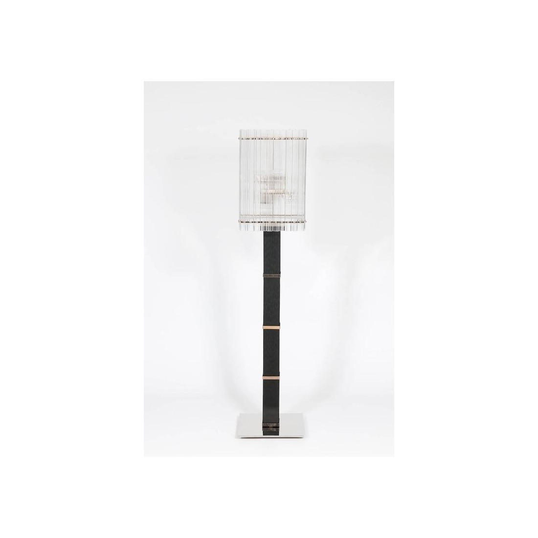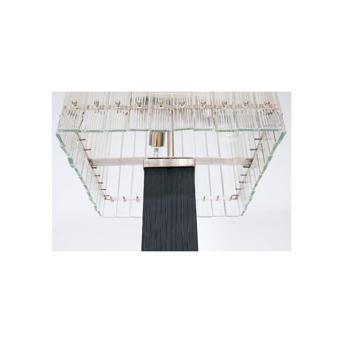 Modern Floor Lamp in Black and Transparent Murano Glass 1990s Italy. Modern Italian Floor lamp in Murano glass in very excellent original condition, composed by a square chromed base, and from four square black glass pieces along the stem divided from chrome stripes, and by a square hat composed by transparent glass pieces striped with inside four lights. Entirely realised handcrafted and hand-blown in the Murano Island during 1990s. The professional rewiring based on your country specifications is included in the service. The floor is in perfect conditions as documented in the attached pictures. Floor lamp measures: Height: 29.53 in. / 190 cm. Width: 15.75 in. / 40 cm. Depth: 15.75 in. / 40cm. Hat (High transparent square part) measures: Height: 23.62 in. / 60 cm. Width: 15.75 in. / 40 cm. Depth: 15.75 in. / 40cm.