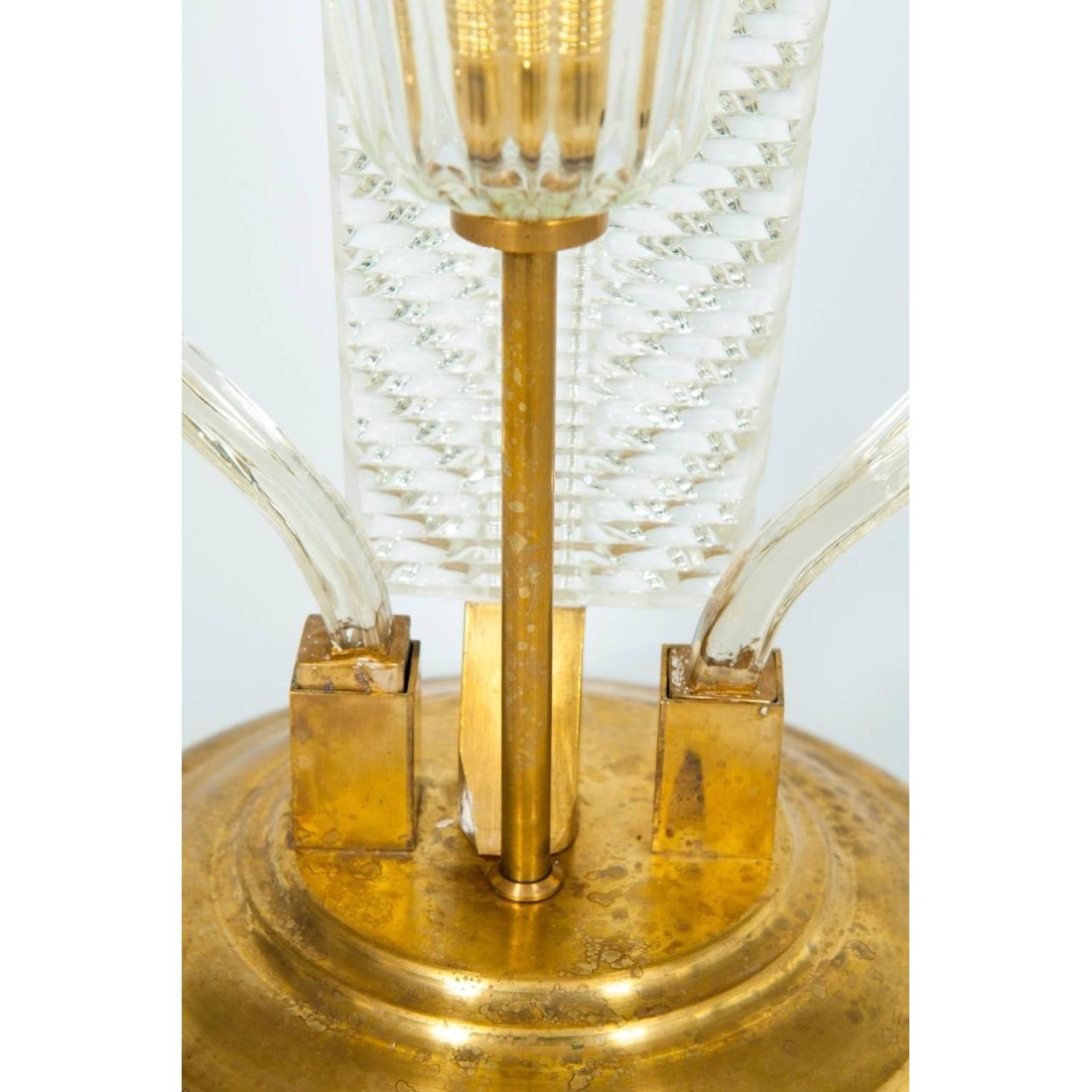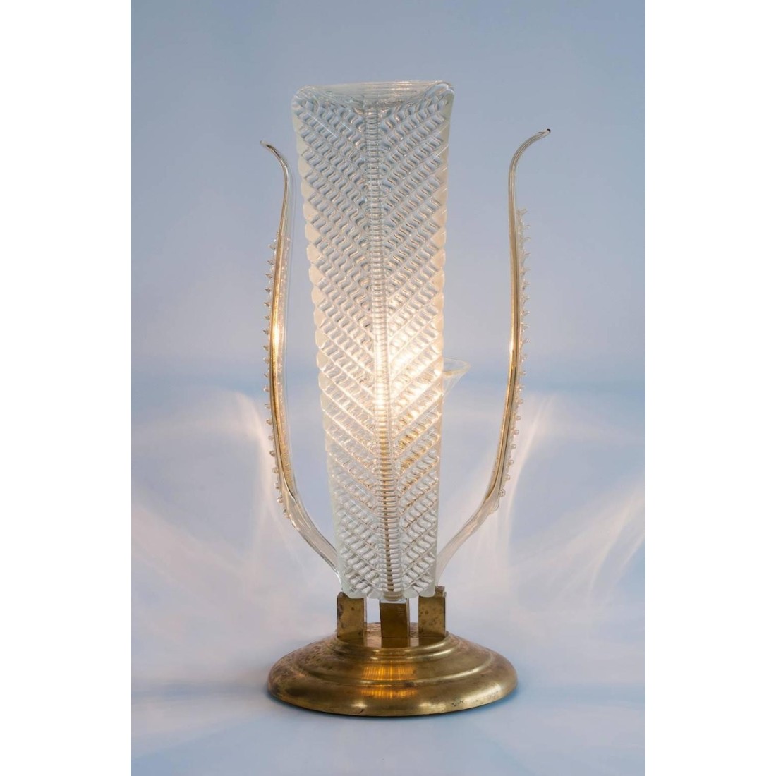 Italian Table Lamp in blown Murano glass clear color and brass, 1950s Venice *