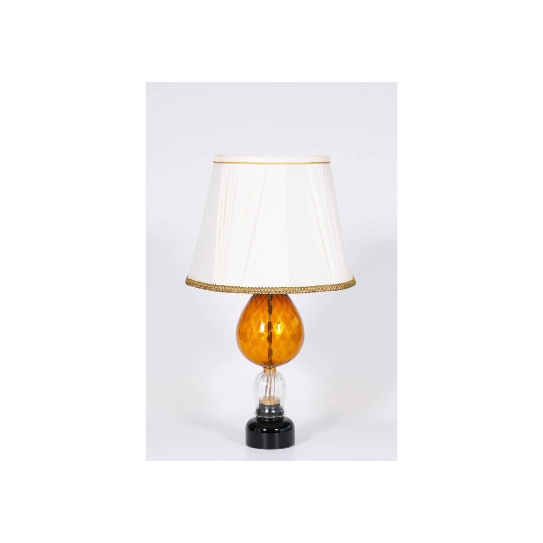 Italian Venetian, Pair Table Lamps, blown Murano Glass, Amber & Dark, 1970s *