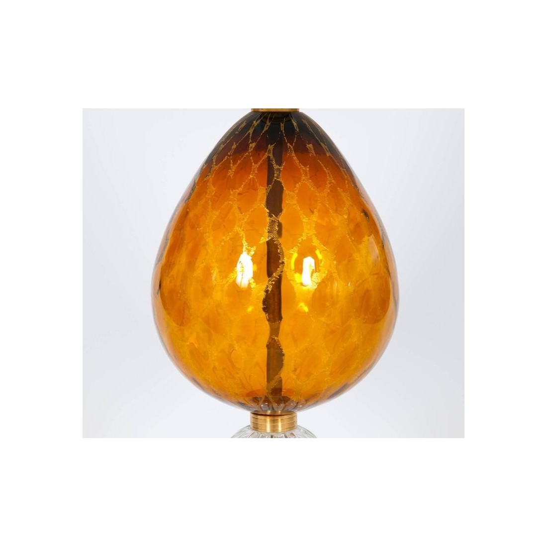 Elegant, and amazing, Italian Venetian, Pair Table Lamps, blown Murano Glass, Amber & Dark, composed by a black basement with above a transparent cup with stripe, and by an amber bowl with gold old honeycomb in the Murano glass body itself. The table lamps has an elegant brass framework. They are entirely handcrafted, in blown Murano glass, manufactured in the Murano Island, by the local artists of the unique and original blown Murano glass art. The table lamps, are in very excellent original condition, dated 1970s. We offer for free the professional rewiring of the items, based on your country's specifications. The lampshade is not included. Please, consider that lampshades are excluded.