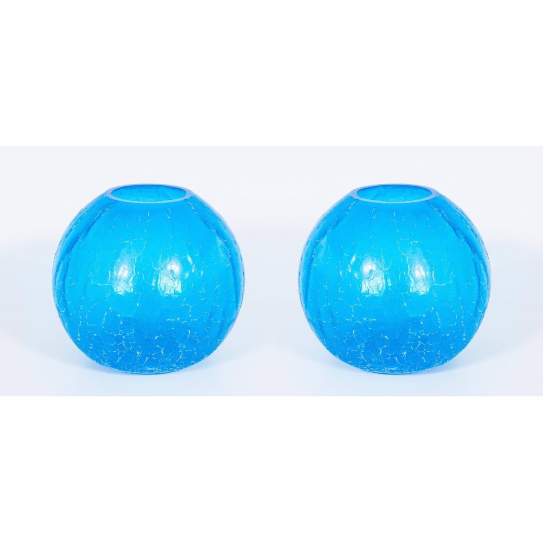 Beautiful pair of Italian Murano glass "Spheres" vases in light-blue, in very excellent original condition and yet with the original label of the maker. Made around in 1970s by glassmaker Cenedese and signed in the bottom. The pair is in perfect conditions as documented by the attached pictures.