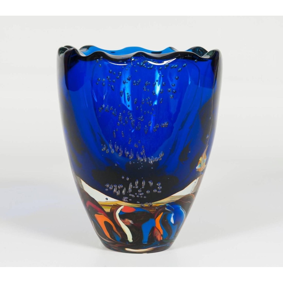 Massive Italian Vase Aquarium with fishes in blown Murano Glass 1980s *