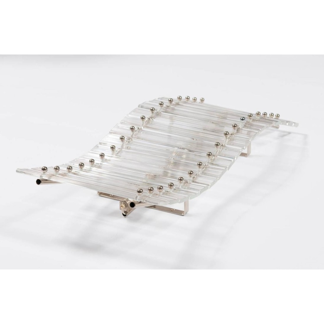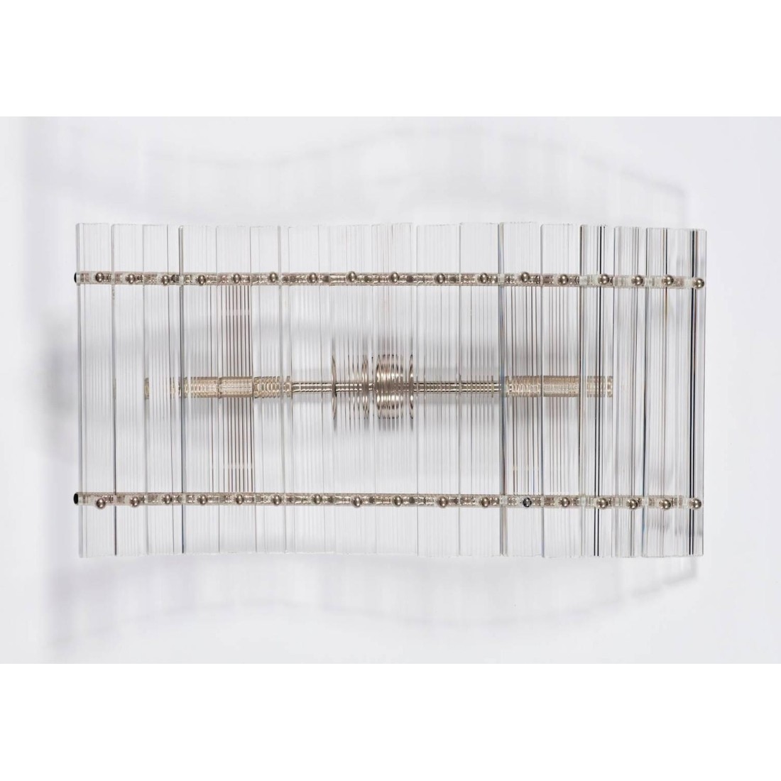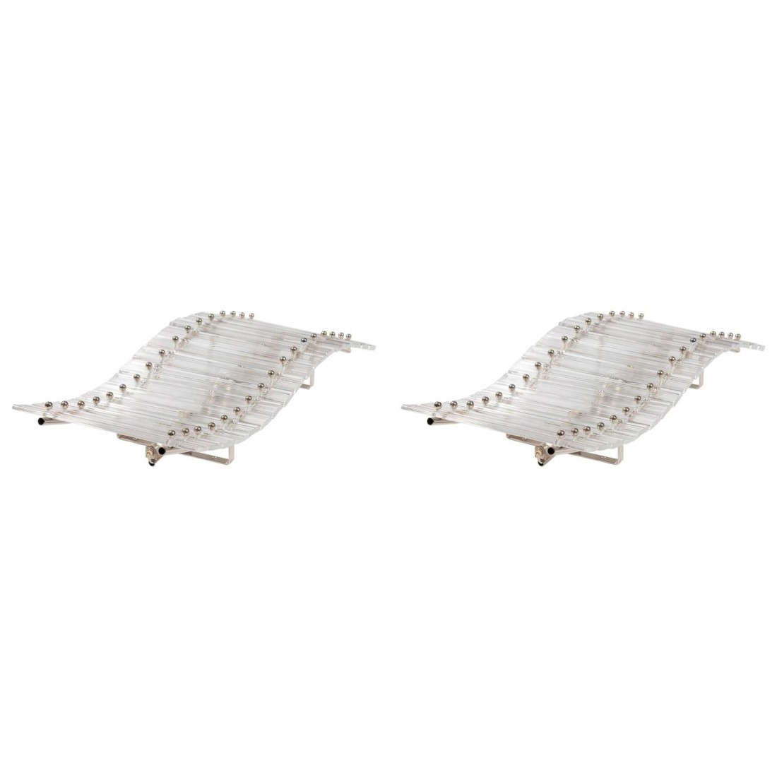 Pair of amazing sconces attributed to Venini circa 1960s, in very excellent original condition, composed by elegant transparent glass strips, with a chrome frame, and with two lights. The sconces are 11.81 inches high, 5.31 inches deep by 23.62 inches wide. We can professionally rewire this item to your country's specifications.