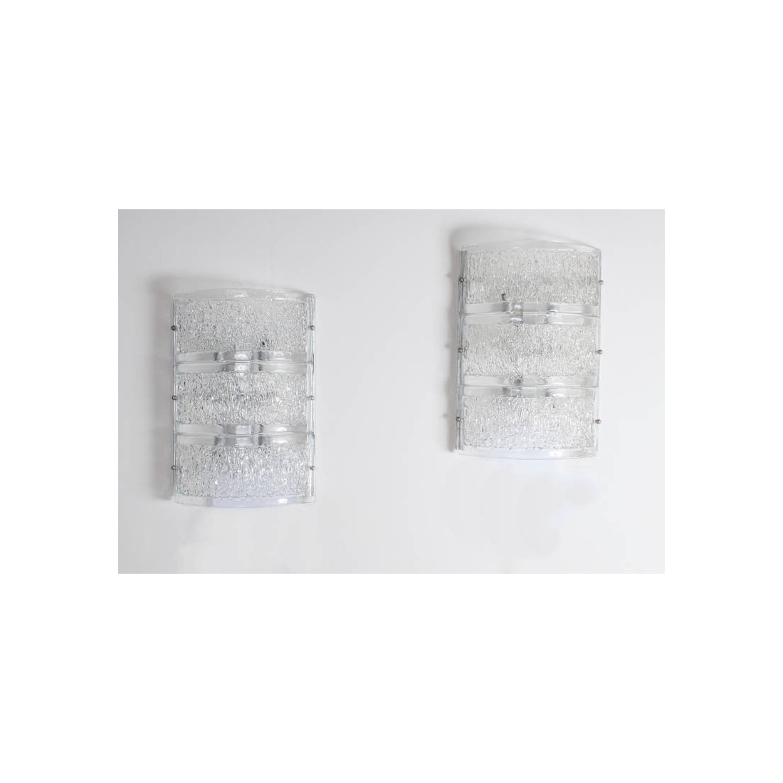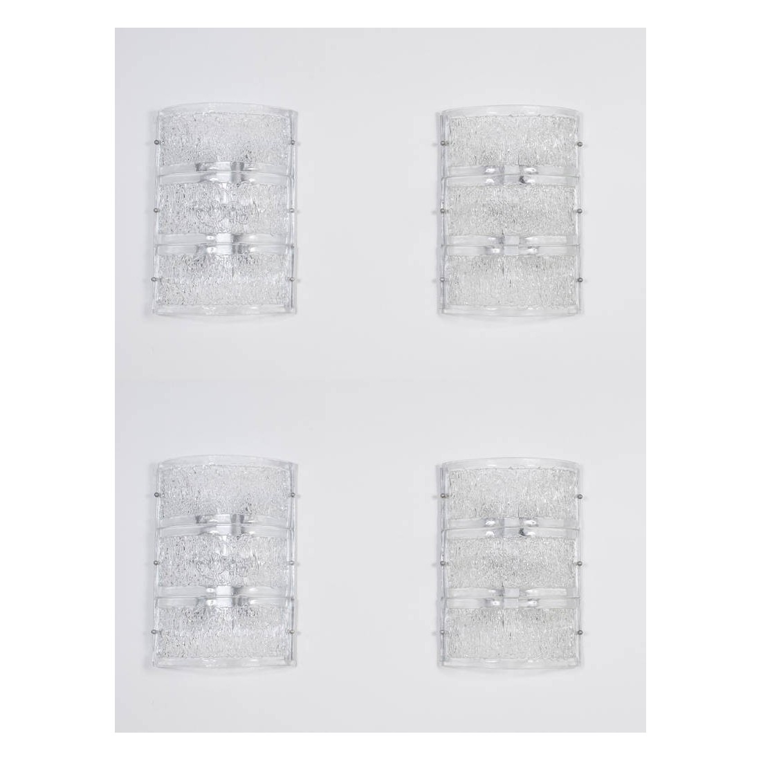 Italian set of 4 sconces in blown Murano Glass clear color Mazzega, 1970s *